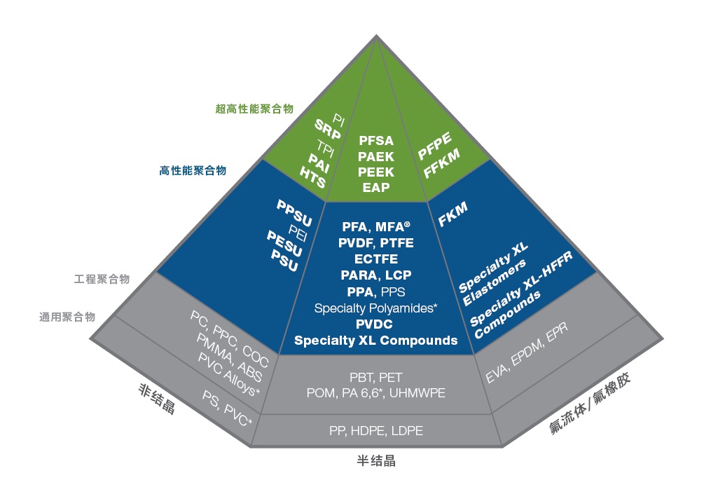 苏威特种聚合物的产品均用粗体在上面的金字塔图内标示。